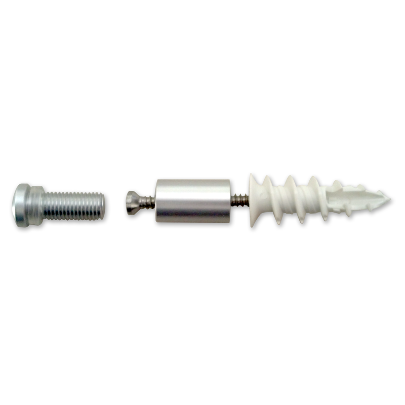 Includes four satin aluminum caps and standoff barrels that measure 1/2" in diameter allowing the acrylic panels to be offset from the wall or door 3/4".