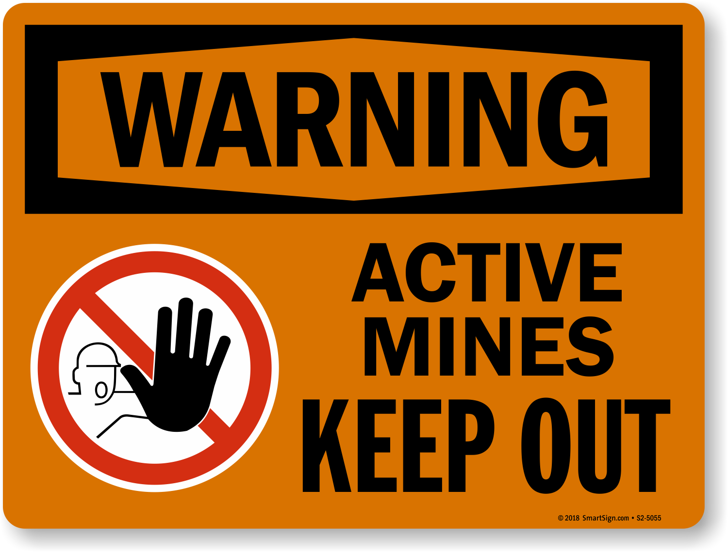 OSHA Warning Sign: Active Mines, Keep Out (With Symbol) S2-5055