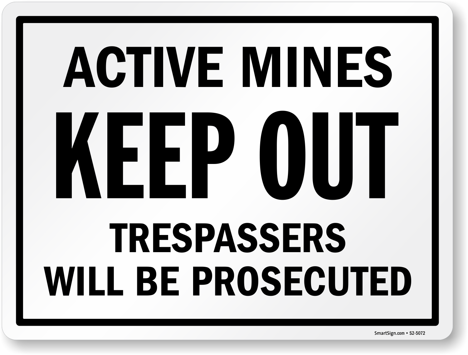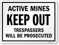 Active Mines Sign: Keep Out - Trespassers Will Be Prosecuted S2-5072