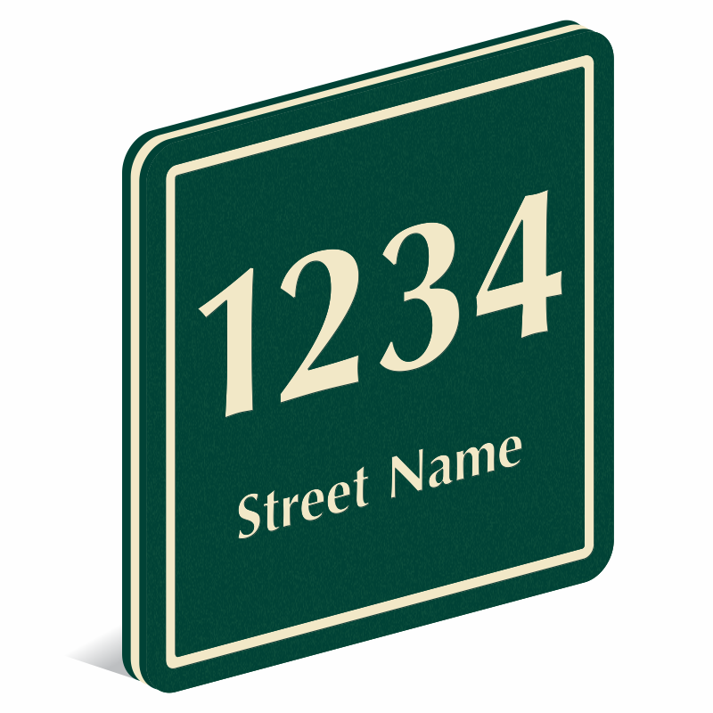 This 18 inch x 18 inch PermaCarve Sign with straight corners can be used to display your own street name and number. No hassles, quick customization process.