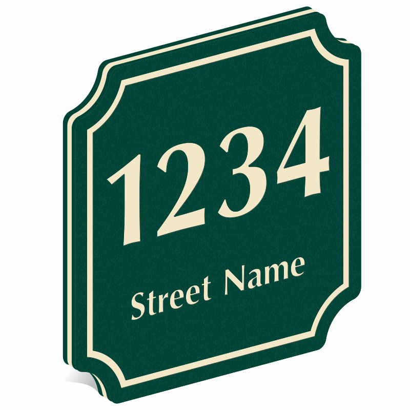 This 18 inch x 18 inch PermaCarve Sign with notched corners can be used to display your own street name and number. No hassles, quick customization process.