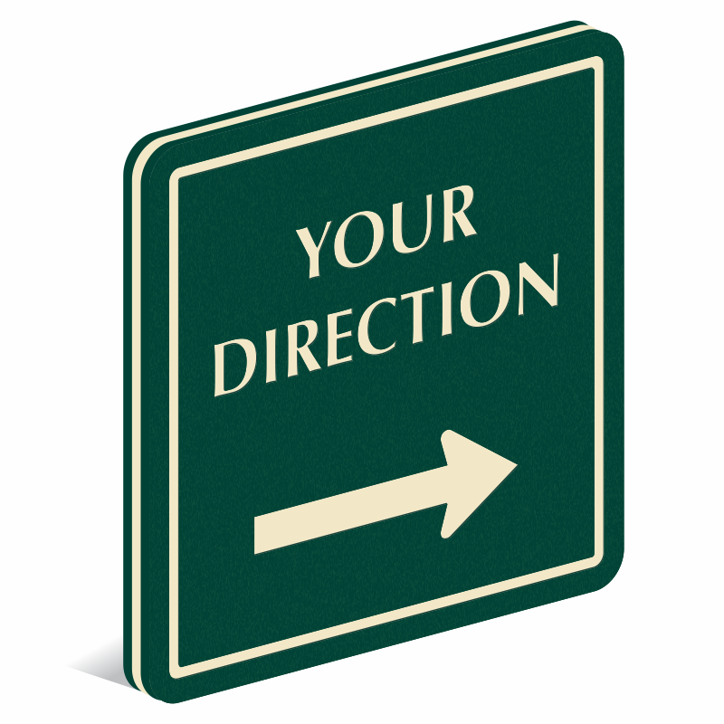 This 18 inch x 18 inch PermaCarve Sign with straight corners can be customized with a particular directional arrow from our library and a personalized text.
