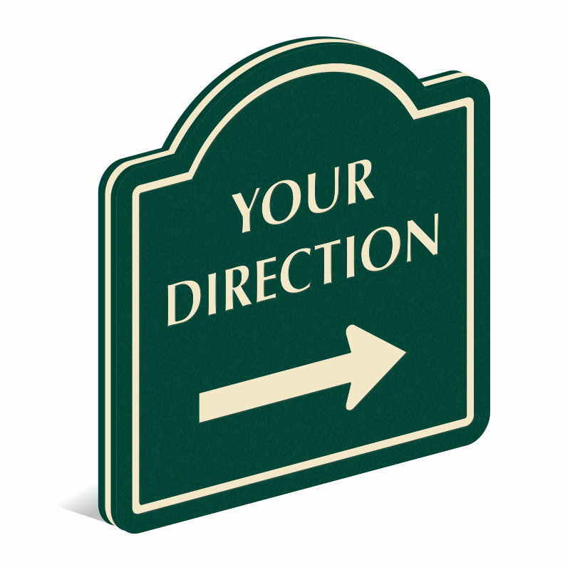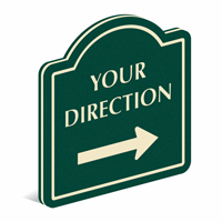 This 18 inch x 18 inch PermaCarve Sign with arched top can be customized with a particular directional arrow from our library and a personalized text.