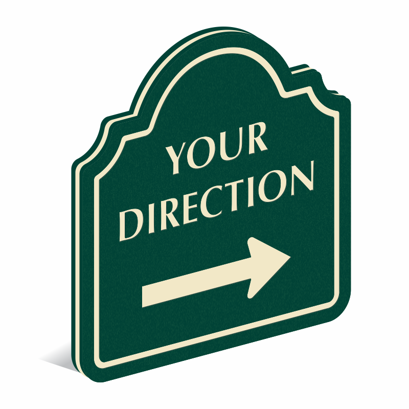 This 18 inch x 18 inch PermaCarve Sign with palladio design can be customized with a particular directional arrow from our library and a personalized text.