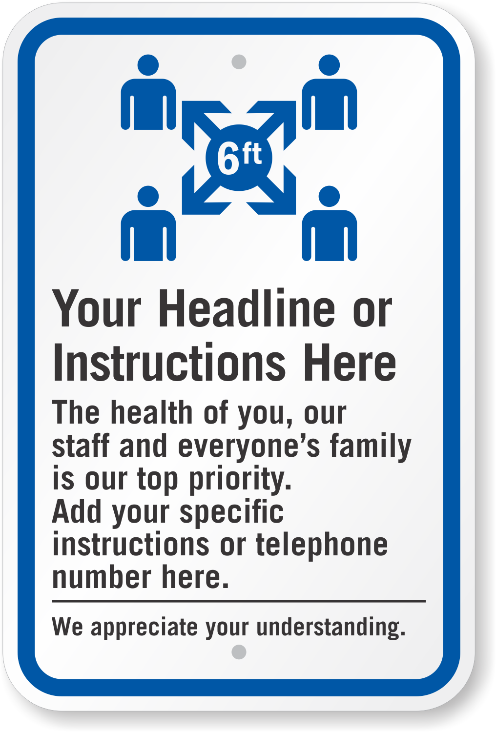 Why settle for a stock sign? Add your custom instructions or message in the headline and make this Social Distancing Sign all yours.