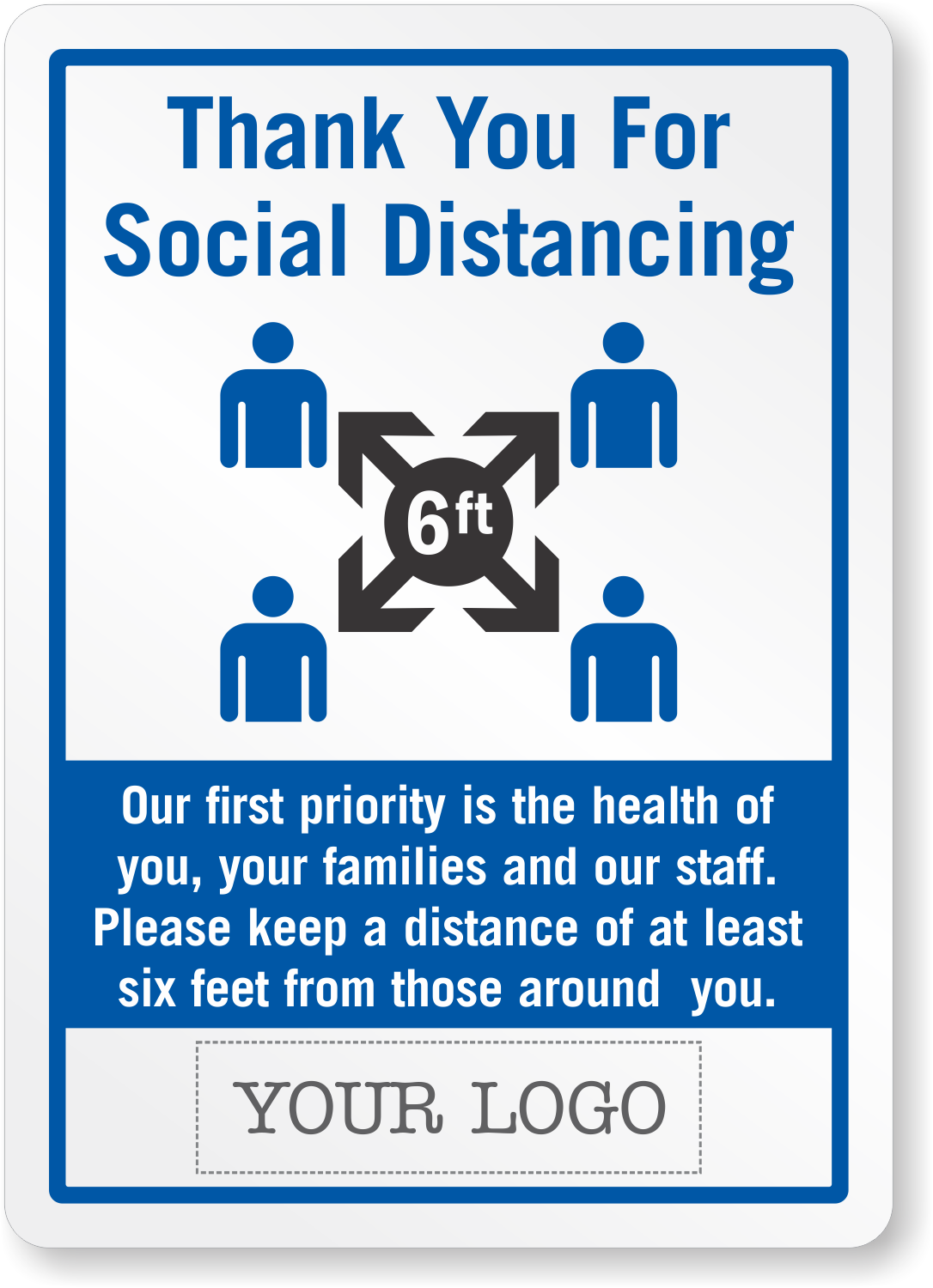 Thank visitors, employees, and guests for maintaining the required social distancing with this sign.