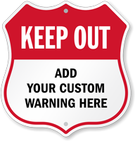 Use our Custom Keep Out Shield Sign to add your personalized warning message.