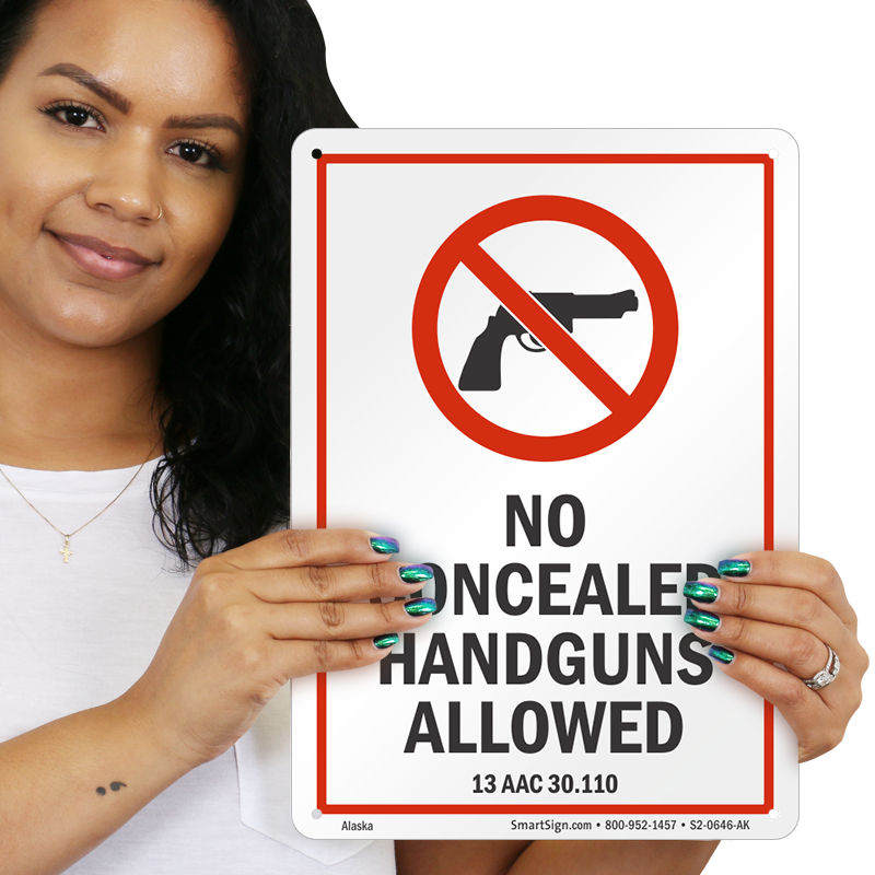 Inform people about the No Concealed Handguns policy on your property with this Gun Control Law Sign. The sign complies with Alaska code section 13 AAC 30.110.