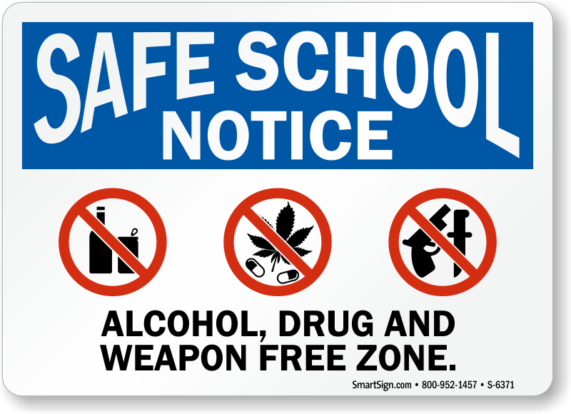 School Safety Sign: Safe School Notice - Alcohol, Drug And Weapon Free Zone S-6371