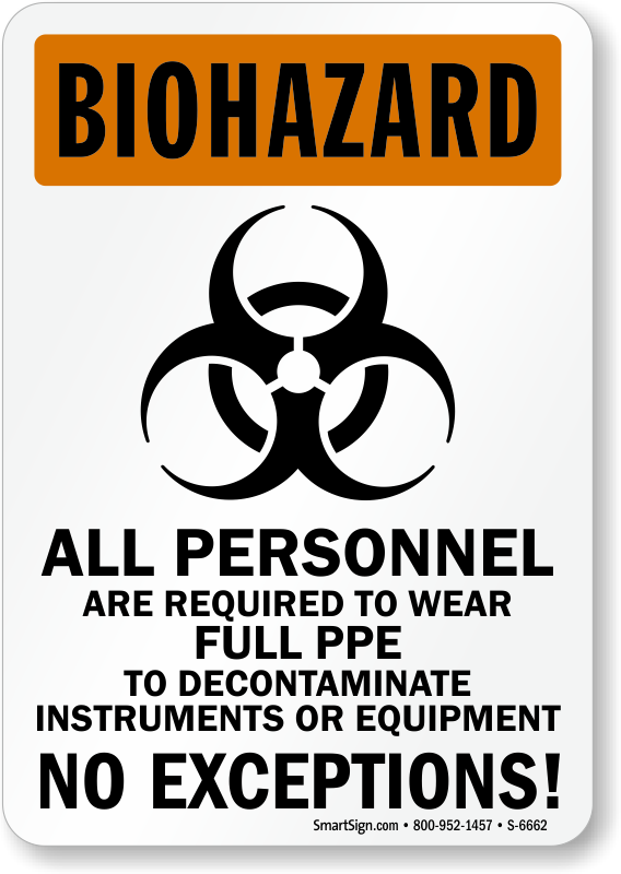 Inform all personnel to wear full protective gear to decontaminate biohazardous equipment or instruments.