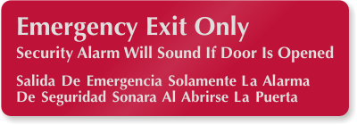 3" x 9" DiamondPlateâ„¢ Door Sign: Emergency Exit Only Security Alarm Will Sound If Door Is Opened (Bilingual) DP-0016 Learn More...