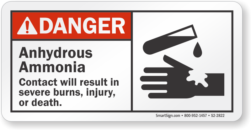 ANSI Danger Sign: Anhydrous Ammonia - Contact Will Result In Severe Burns, Injury Or Death