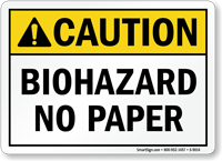 ANSI Caution Sign: Caution - Biohazard No Paper S-9014