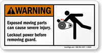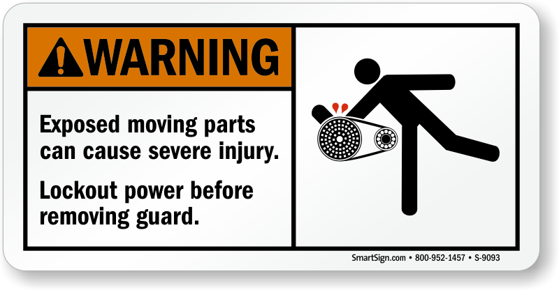 If failing to lockout a machine can cause severe injury due to slow moving parts, share that information with your workers through warning signage.