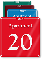 Differentiate one building from the other in your large residential society and prevent confusion for visitors and mailmen. The most convenient way is to serially mark apartment blocks with these Apartment Number ShowCase Wall signs. This designer sign in a choice of elegant colors indicates Apartment 20.
