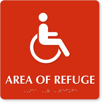 8" x 8" TactileTouchâ„¢ Sign with Braille: Area Of Refuge (with Handicapped Symbol) SB-0342