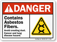 Asbestos Warning Signs: Contains Asbestos Fibers Avoid Creating Dust S-7859 Learn More...
