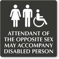 Convey that you allow opposite-sex attendant to accompany the disabled person with this durable engraved sign. Choose from 15 color schemes.
