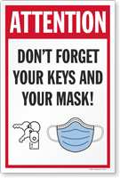 Our durable corrugated plastic sign panel is a convenient way to remind people about keys and face mask.