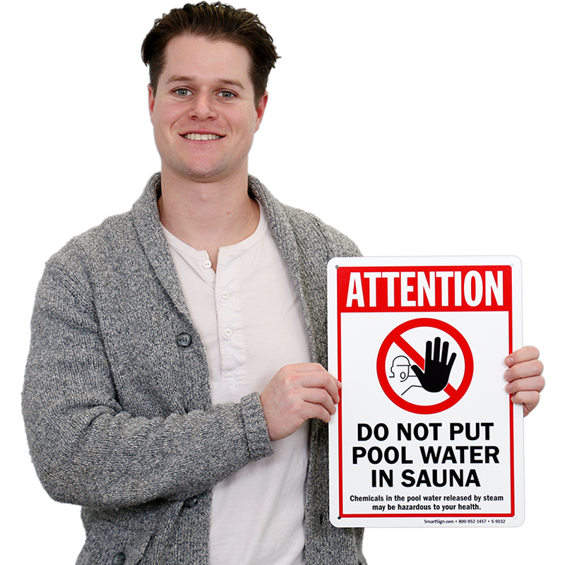 Don't let your guests get any bright ideas about putting pool water in the sauna. This sign will help everyone experience the sauna as it should be, with fresh, untreated water.