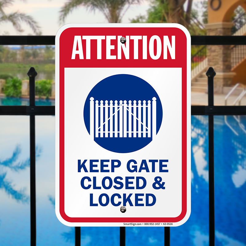 Pool Safety Sign: Attention, Keep Gate Closed and Locked with Graphic K2-0536 Learn More...