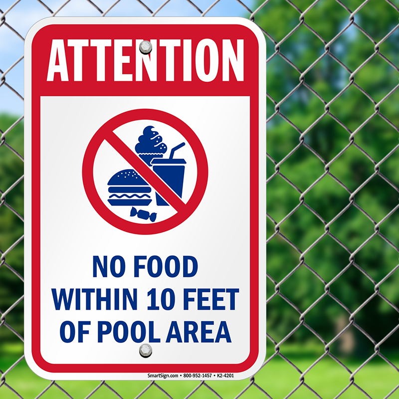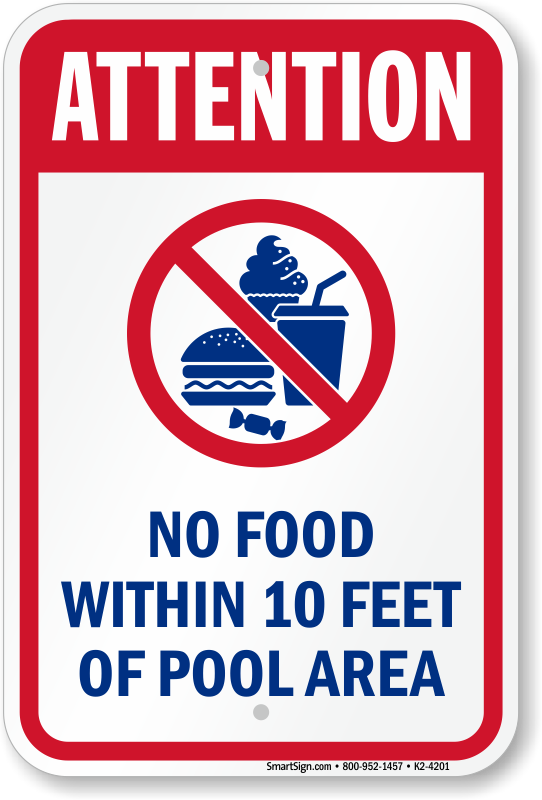 Pool Safety Sign: Attention - No Food Within 10 Feet Of Pool Area K2-4201