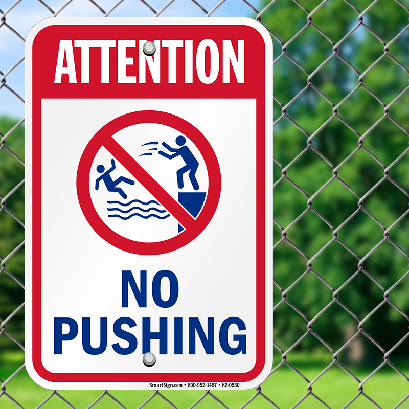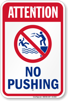 Pool Safety Sign: Attention, No Pushing with Graphic K2-0530 Learn More...