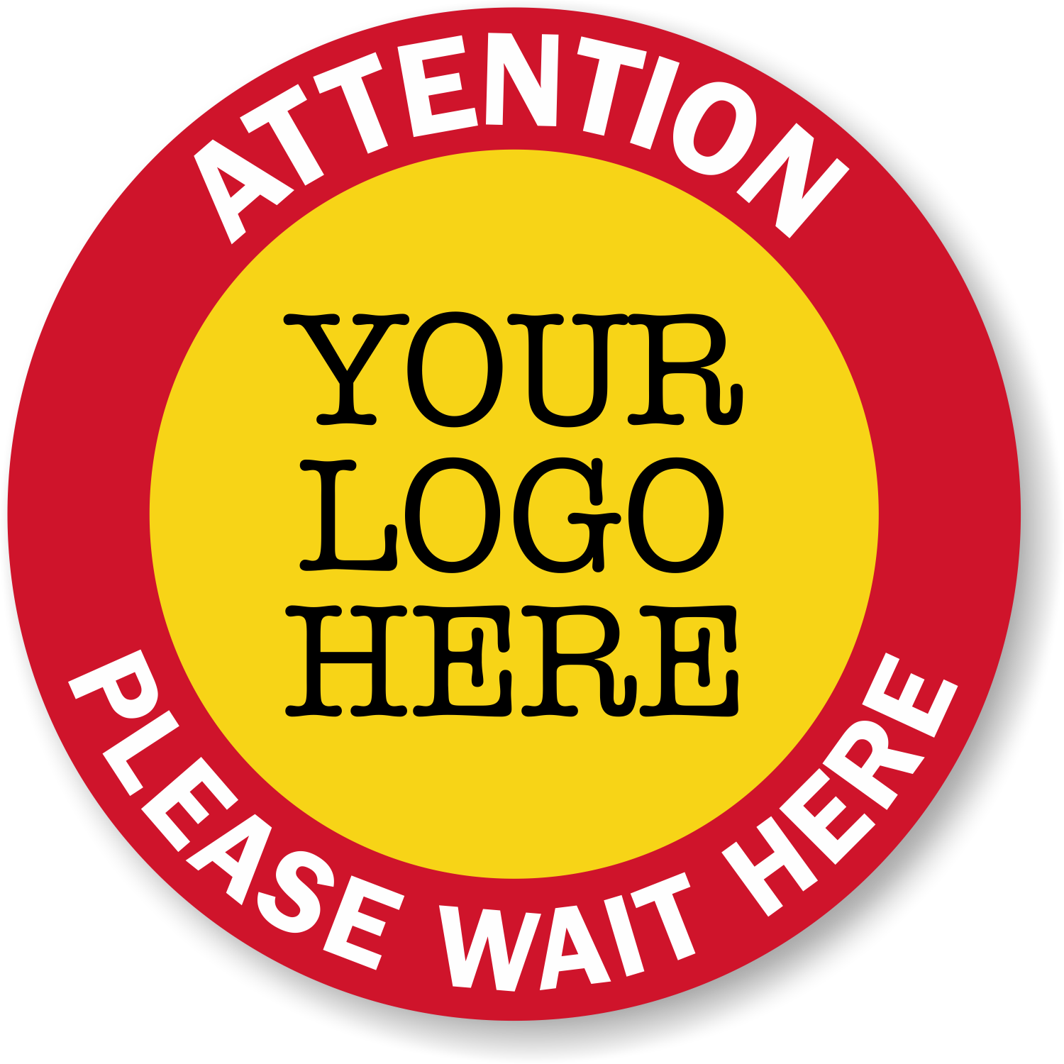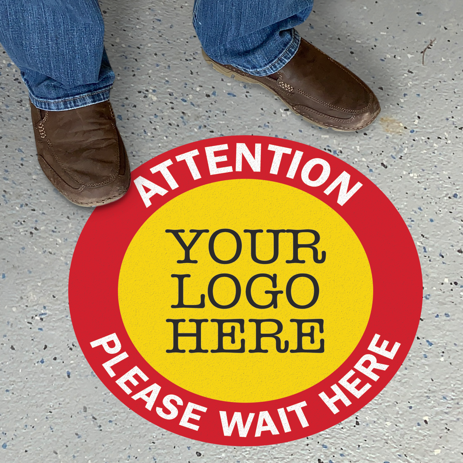 SlipSafe⢠Custom Floor Sign: Attention - Please Wait Here, Add Your Logo Here