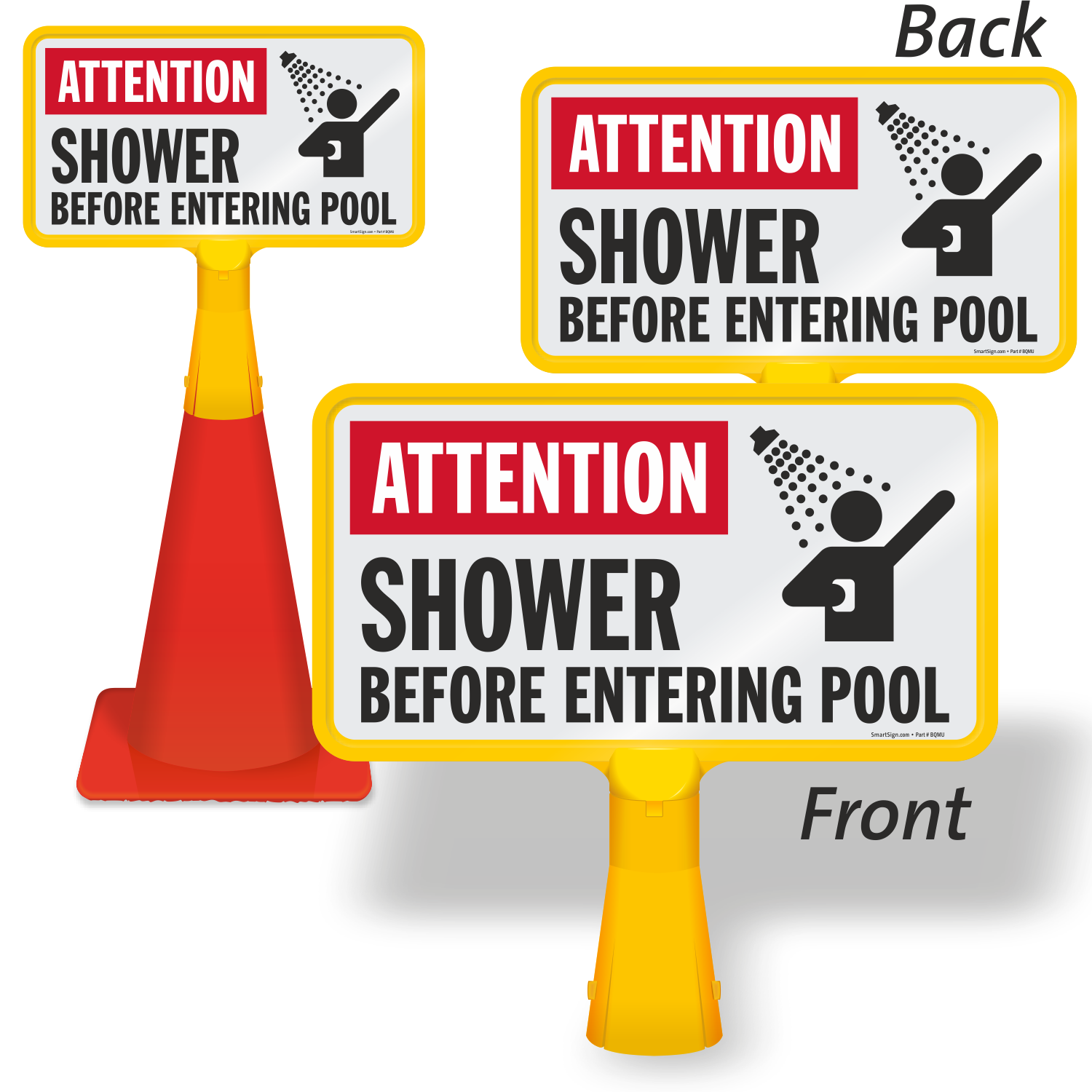 Maintain a good level of hygiene in your pools with this 'Please Shower Before Entering Pool' ConeBoss Pool Sign.