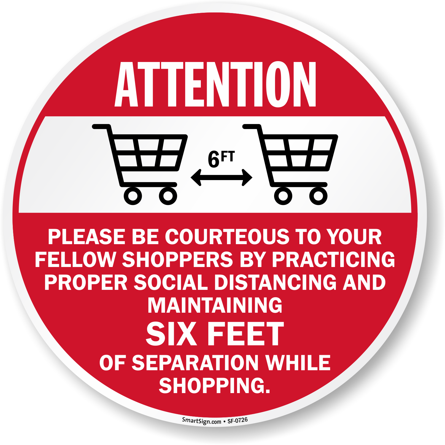 Attention Stay Six Feet Apart While Shopping: Attention: Please Be Courteous To Other Shoppers Maintain Social Distance (Graphic) Floor Sign Learn More...