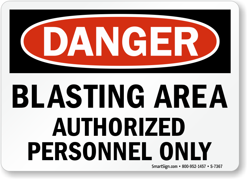 OSHA Danger Sign: Blasting Area - Authorized Personnel Only S-7367
