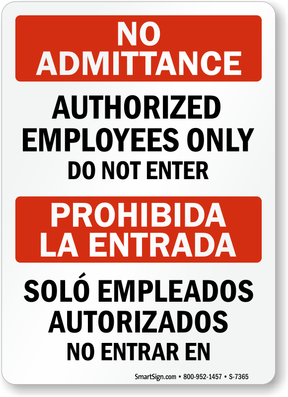 This straight-to-the-point sign gets your message across in English and Spanish. Bilingual signs reach a much larger audience.