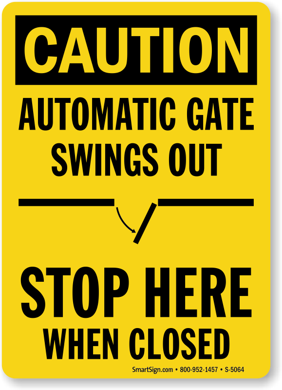 Caution Sign: Automatic Gate Swings Out / Stop Here When Closed S-5064 Learn More...
