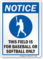 Notice Baseball Field Warning Sign: This Field Is For Baseball Or Softball Only S2-1826
