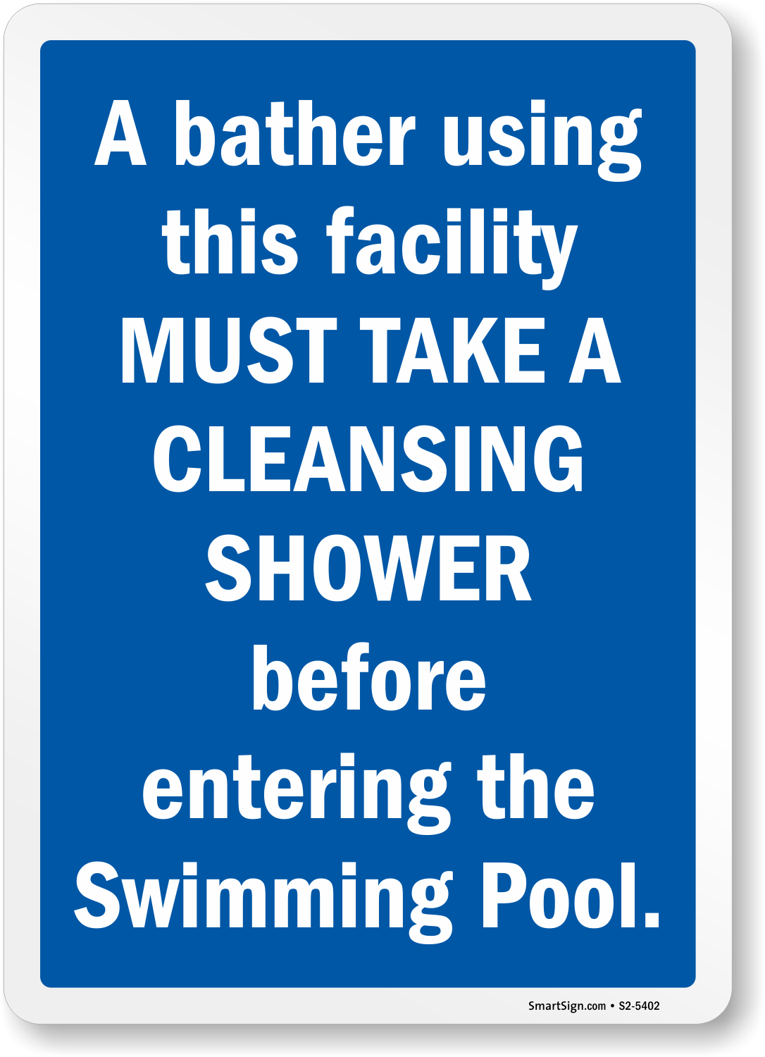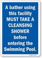 Pool Rules Sign: A Bather Using This Facility Must Take A Cleansing Shower Before Entering The Pool S2-5402 Learn More...