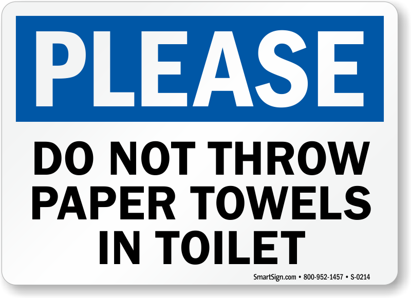 Please Sign: Do Not Throw Paper Towels In Toilet S-0214