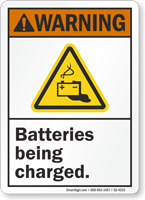 ANSI Warning Sign gives sufficient heads up against batteries being charged.