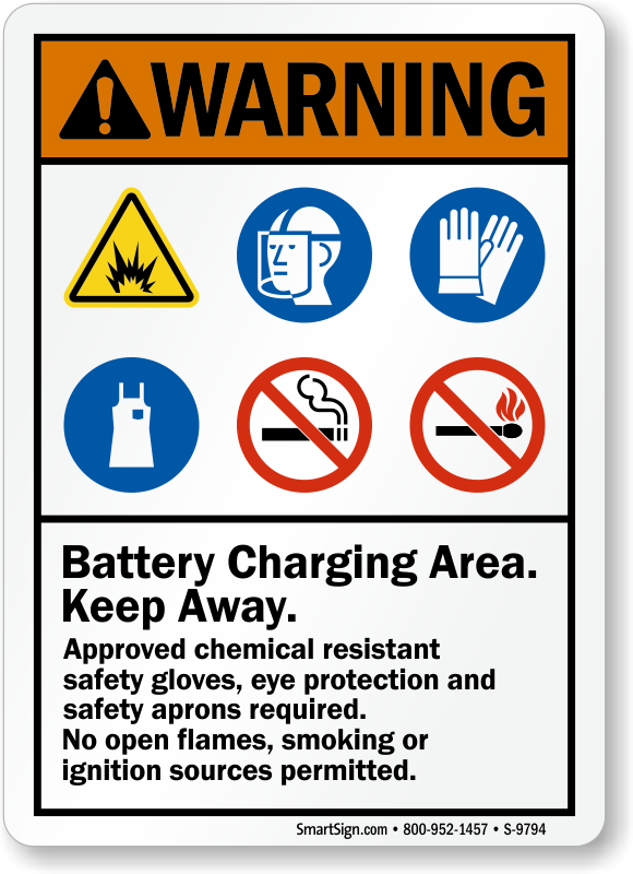 Remind workers to wear protective gear when working near battery charging area.