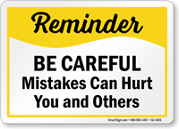 Safety Reminder Sign: Be Careful Mistakes Can Hurt You and Others S2-1625