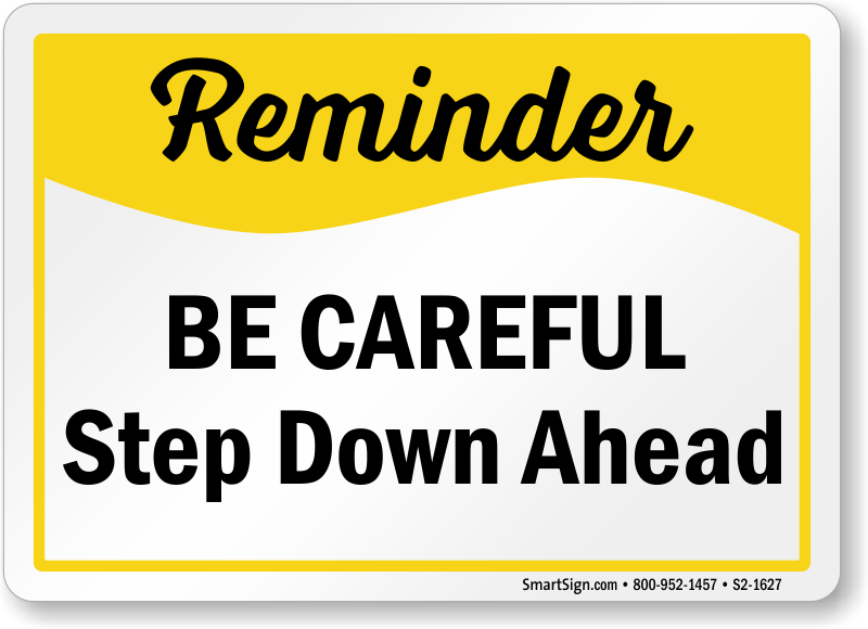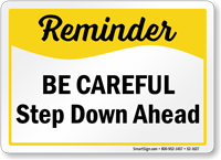 Safety Reminder Sign: Be Careful Step Down Ahead S2-1627