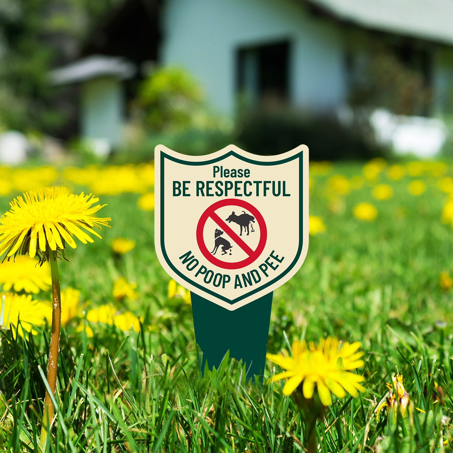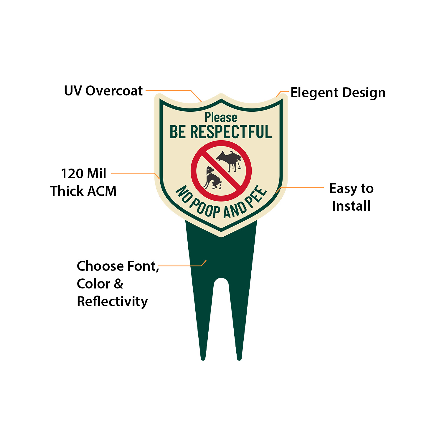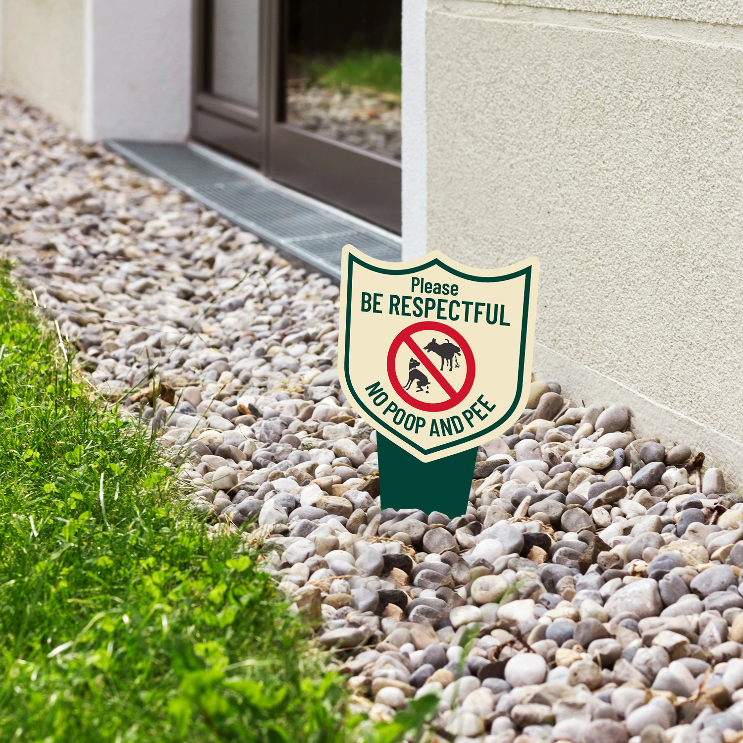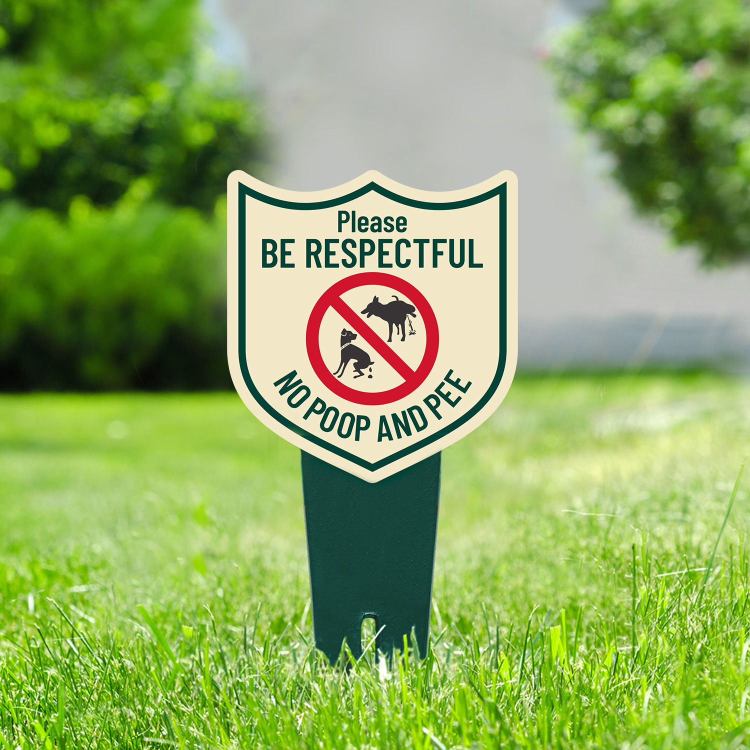 Shield Shape Yard Stake Sign: Please Be Respectful - No Poop And Pee K2-6934