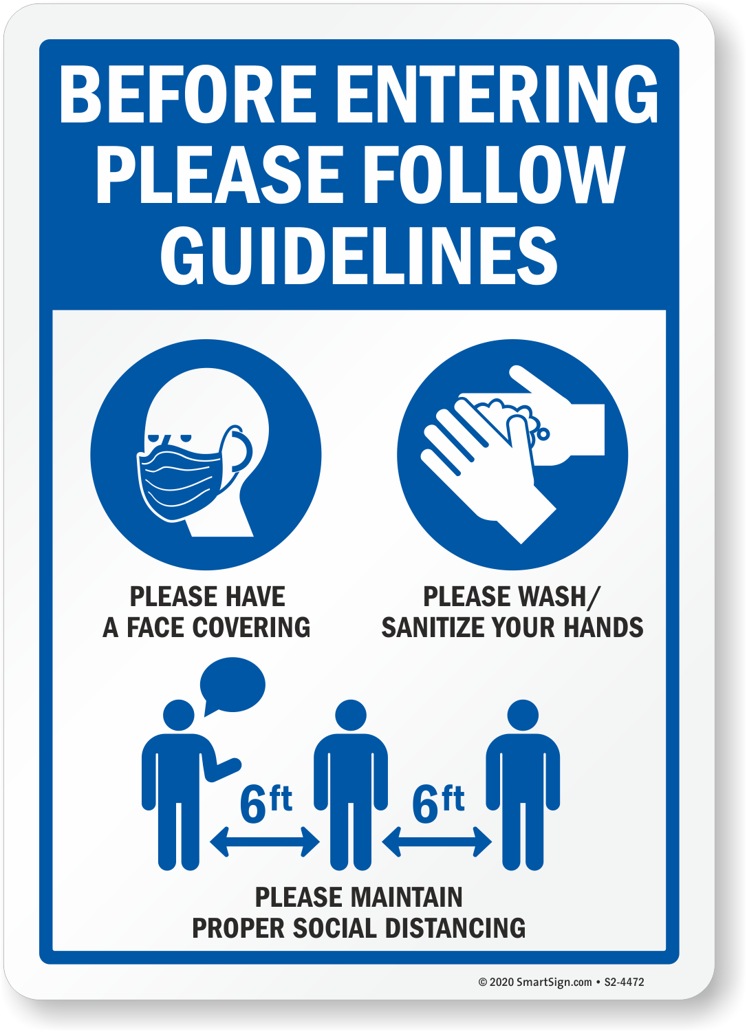 Social Distancing Sign: Before Entering Please Follow Guidelines - Please Have A Face Covering, Wash/Sanitize Your Hands And Maintain Proper Social Distancing