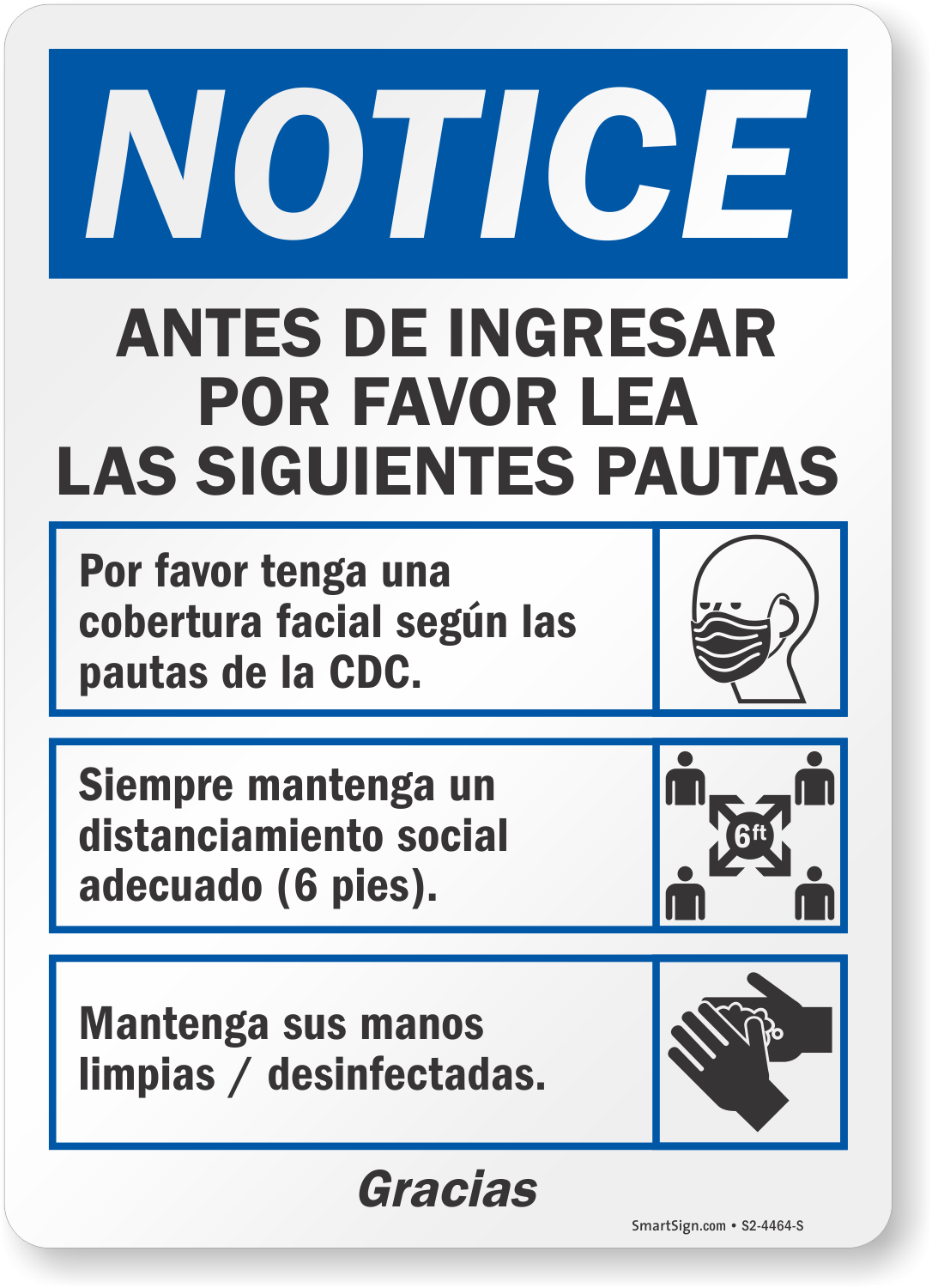 Convey your COVID-19 specific guidelines to your Spanish audience with this sign that uses illustrations for more effective message delivery.
