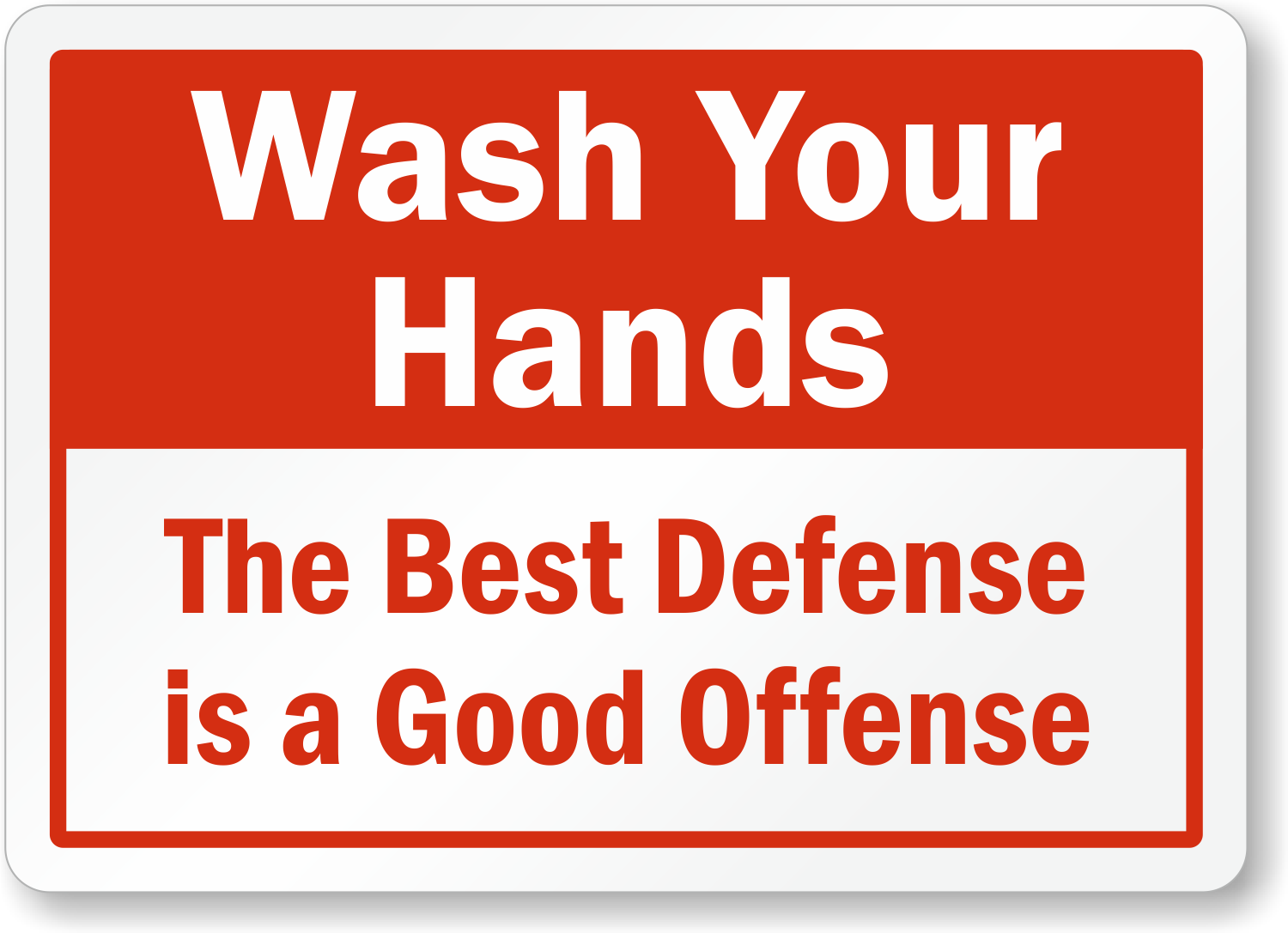 Hand Washing Sign: Wash Your Hands - The Best Defense Is A Good Offense S2-4344