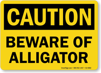 Water bodies susceptible of being home to alligators should be marked with this OSHA Caution Sign in the vicinity.