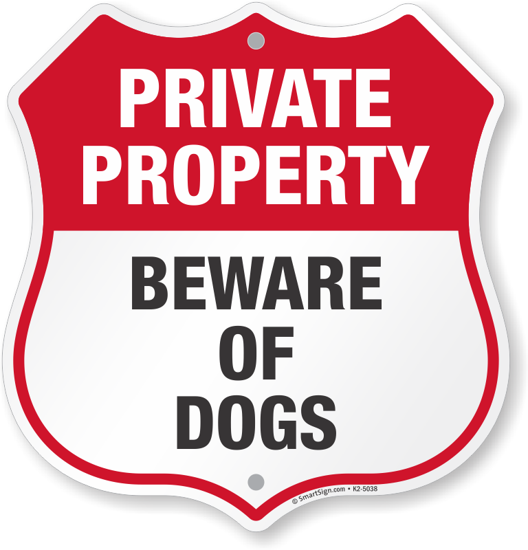 Private Property Shield Sign: Beware Of Dogs K2-5038 Learn More...