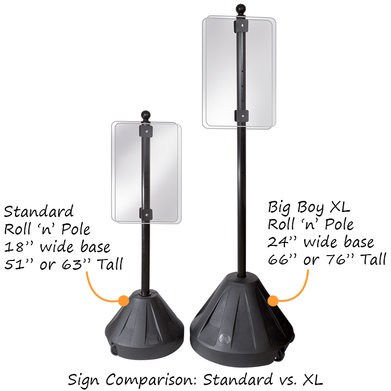 The Big Boy XL Roll 'n' Pole Portable Sign Holder gives you the flexibility to display your message where you know it'll have the most impact. Simply tip and roll to bring your message anywhere!