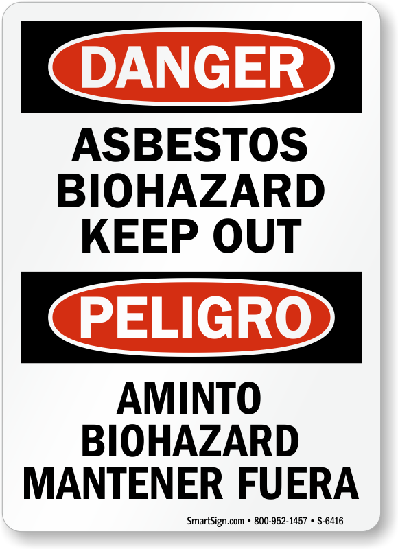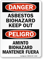 Giving warning in two languages, the message has a wider reach. Install this OSHA sign to warn workers of the asbestos biohazard.