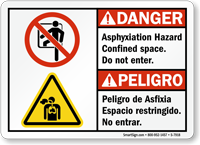 Bilingual ANSI Danger / Peligro Sign: Asphyxiation Hazard Confined Space. Do Not Enter S-7918