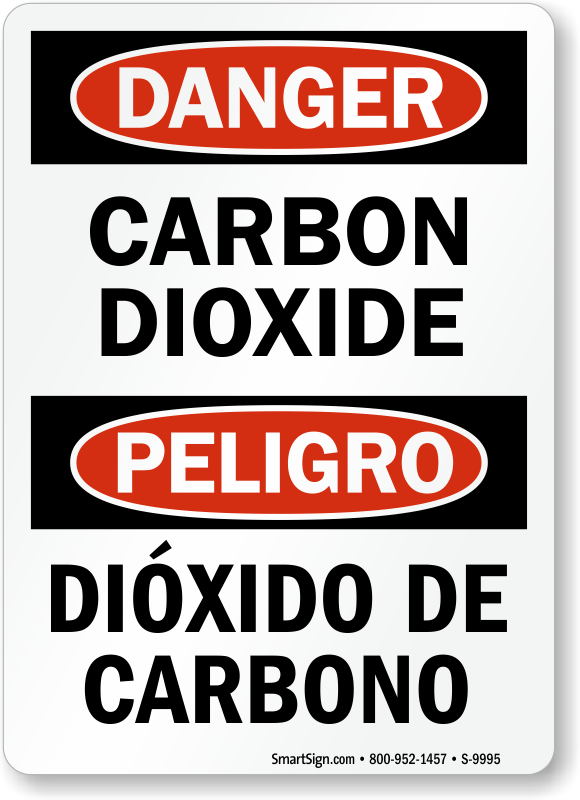 Clearly state that Carbon Dioxide is present and that it is dangerous. A bilingual OSHA Danger sign is effective in conveying the message.